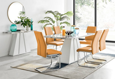 White marble dining shop table and 6 chairs